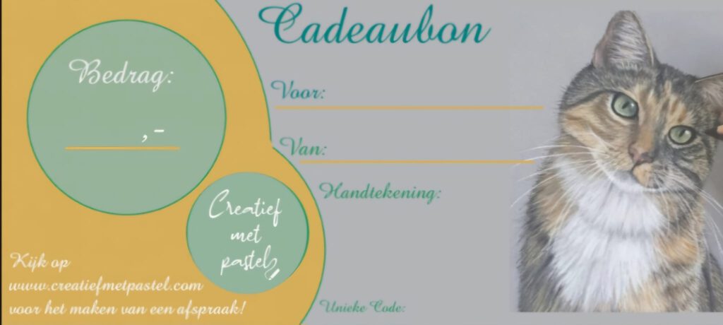Cadeaubonnen – Een flexibel cadeau voor iedereen die interesse heeft in pastelkunst. Te gebruiken voor workshops of aankopen.